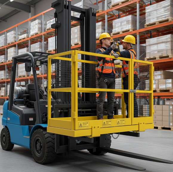 Корзина для вилочного погрузчика (или рабочая платформа) – это навесное оборудование, предназначенное для безопасного подъема людей на высоту с помощью вилочного погрузчика.