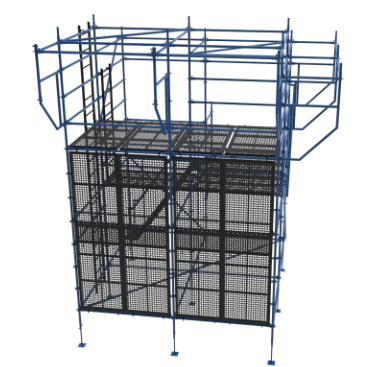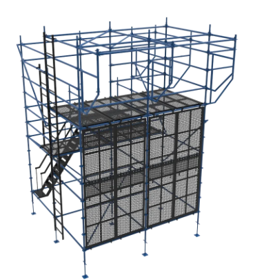 - Базовая конструкция включает опорные колонны, имитацию рабочих зон