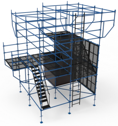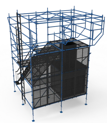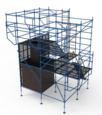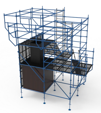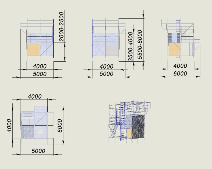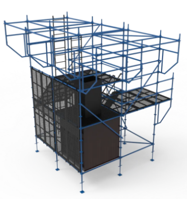 - Базовая конструкция включает опорные колонны, имитацию рабочих зон